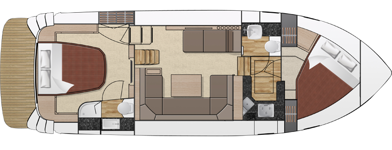It features the latest materials and innovative design with a generous aft cabin which defies its exterior size. With engine options up to 660hp it also offers effortless performance for cross channel excursions. The 370 provides four comfortable berths and spacious living for extended periods in a boat which is equally at home at sea or on inland waterways. In addition to two well furnished cabins, stylish saloon and galley, the spacious cockpit is the ideal place for dining and entertaining in style.
