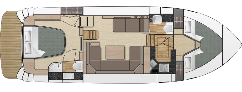A wide choice of fabrics and finishes will allow you to create your own stylish living quarters. Your spacious saloon can be enhanced by twin opening skylights and fitted out with the latest in home entertainment systems, linked to cockpit speakers. The Broom electrical command system is your way of keeping tabs on the boat’s systems at the touch of a button. Our customisation programme ensures your Broom 370 is tailored around you, with one-to-one design consultations, choice of materials, colours and layouts. Visit our customisation section to find out more.