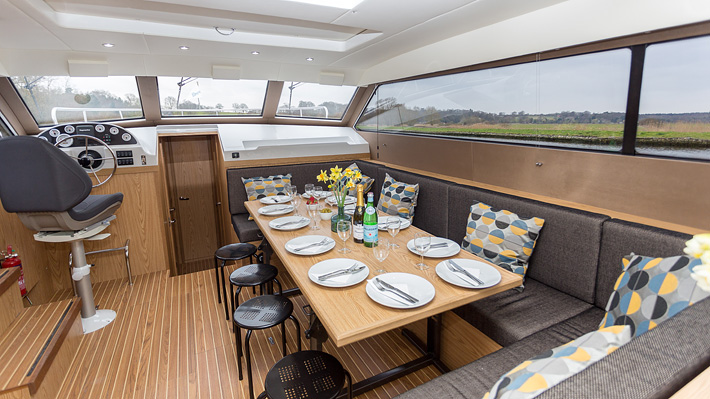 The Inver Lady class is the largest boat available for hire on the Erne. With 5 separate cabins, 2 twins, 3 twin/doubles and 3 separate electric toilets and 2 showers the boat can accommodate up to 12 people in comfort.